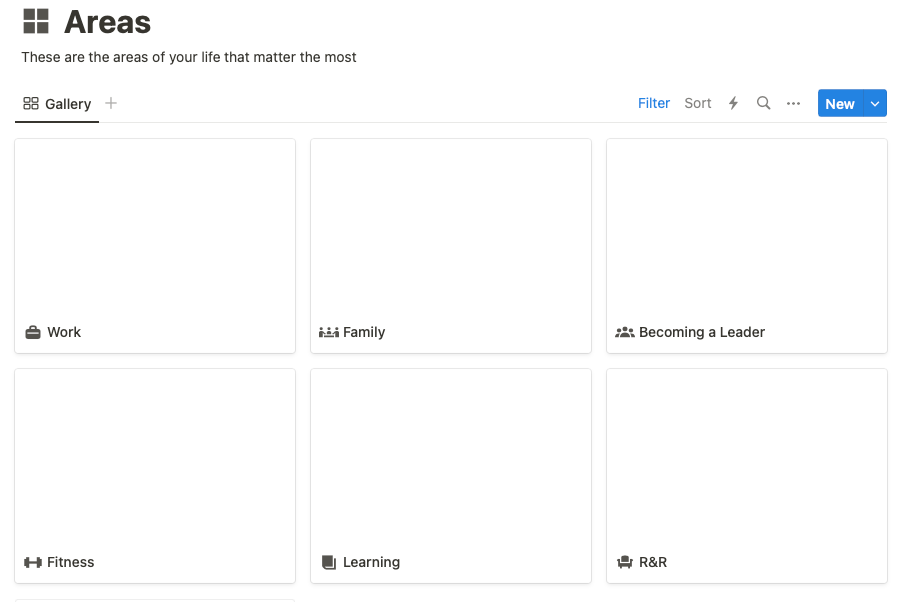 The PARA method categorizes this as the collection of long-term responsibilities you wish to manage over time. This can encompass a wide range of aspects like family, friends, team management, coding projects, and more. However, I prefer a more high-level approach. When we delve into too much detail, our list can become overwhelming.